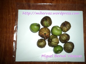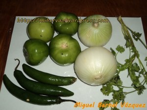 1. –Tomate de cáscara (buscaba los denominado “tixtlecos”, los cuales se producen en esa región del Estado de Guerrero, y son más pequeños que los de otras regiones), no muy maduros, porque de ser así, le proporcionan una marcada acidez a la salsa.
