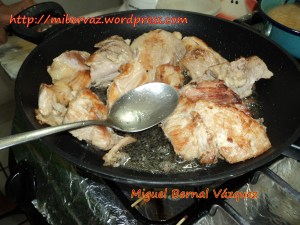 3. A la carne ya sin el agua o caldo le agregaba en la misma cacerola un poco de manteca de cerdo (poca manteca para que no se hiciera abundante con la que soltaba la carne), y los trozos mantuvieran su consistencia.