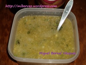 5. Licuados los chiles y tomates, les agregaba el cilantro y cebolla picadas, asimismo la sal.